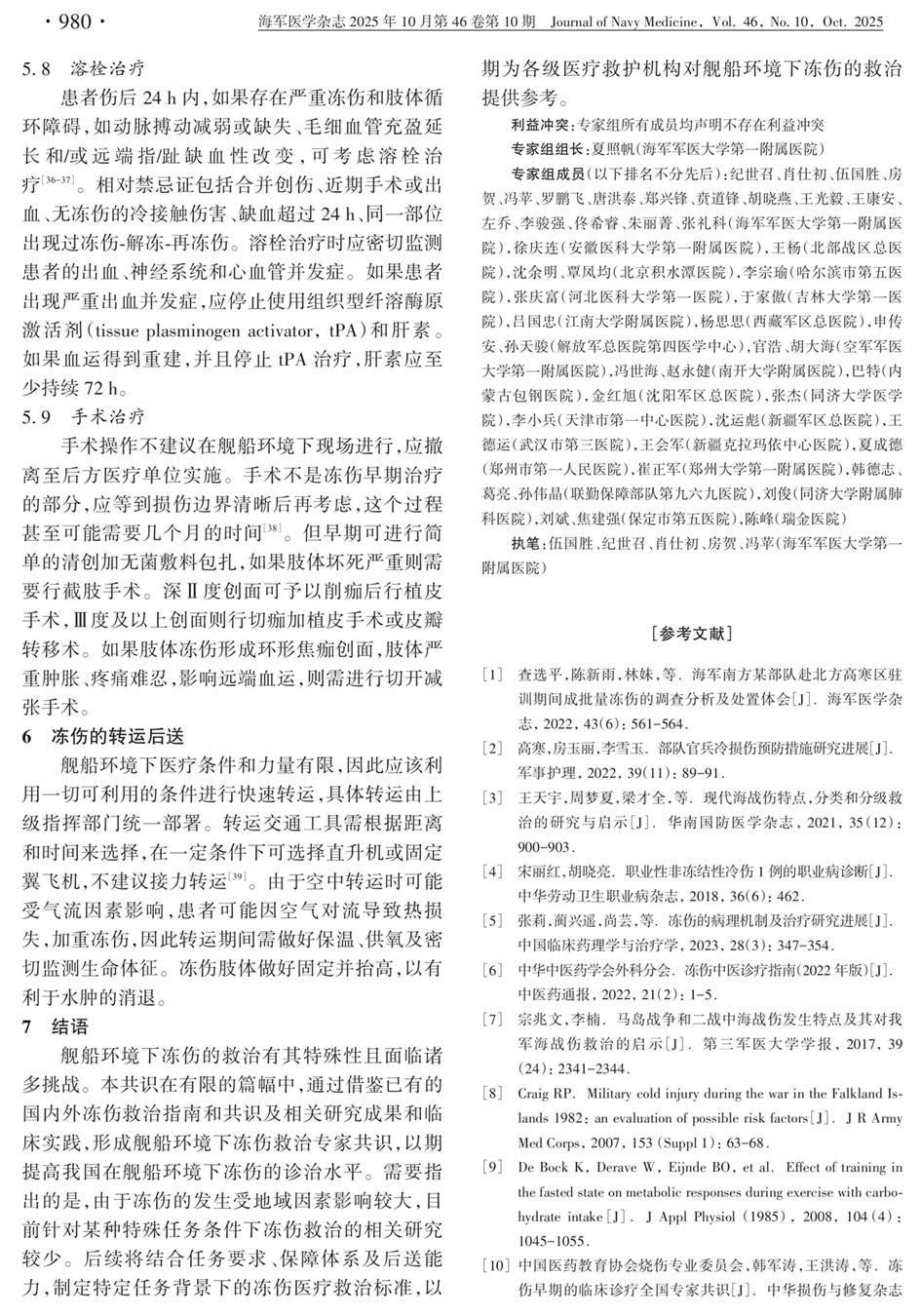 6、冻伤的转运后送 7、结语