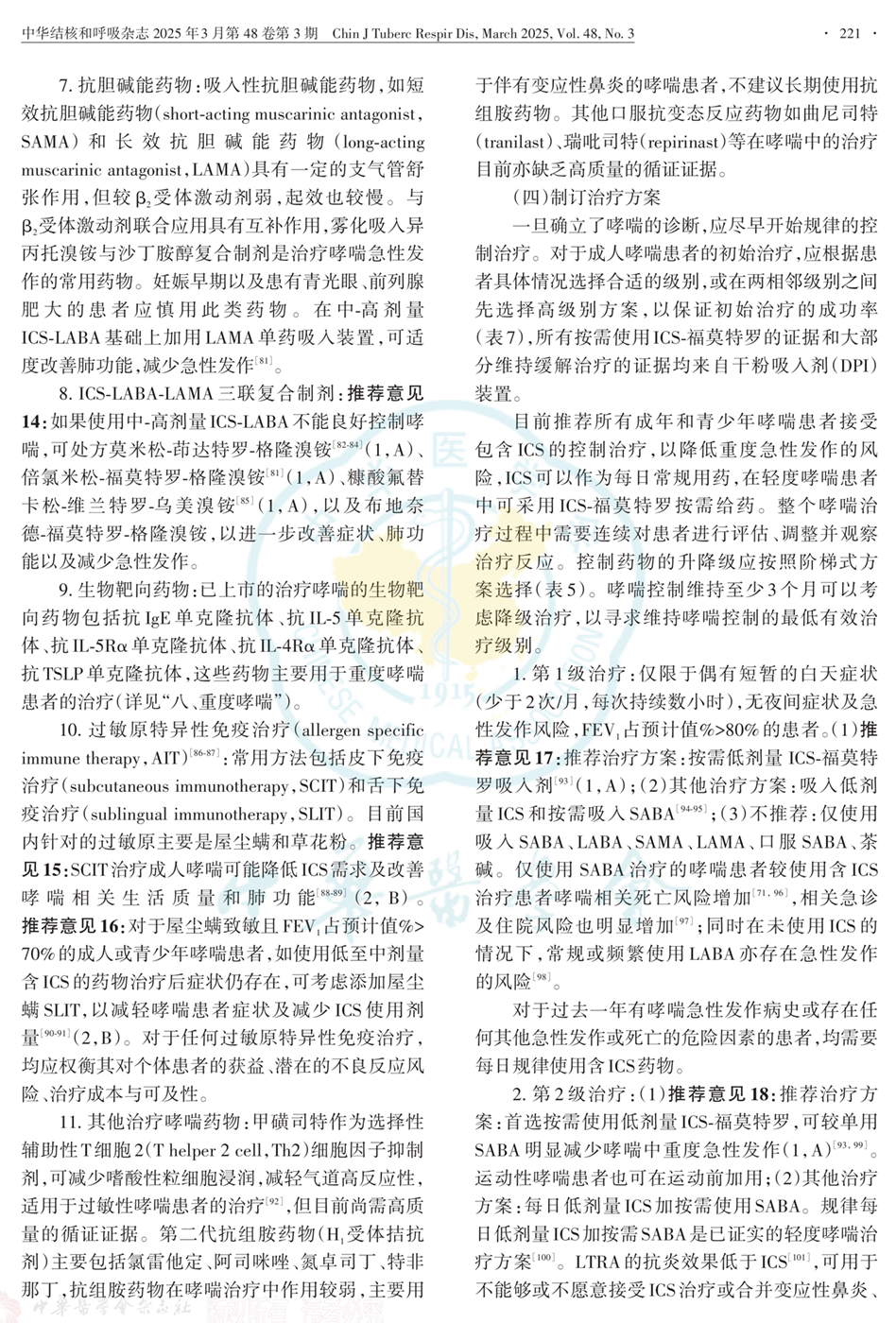 支气管哮喘防治指南