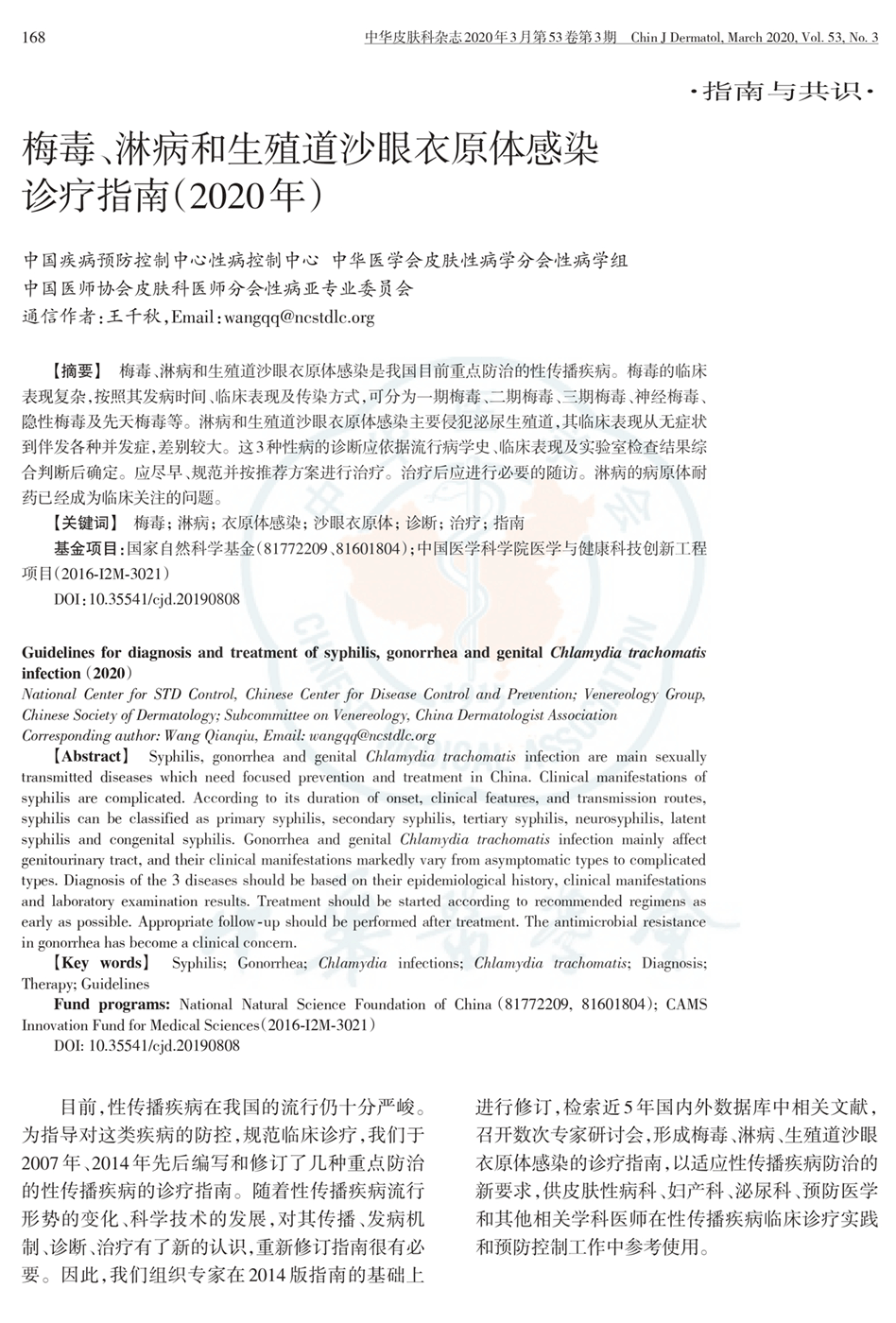 梅毒、淋病和生殖沙眼衣原体感染诊疗指南(2020年)