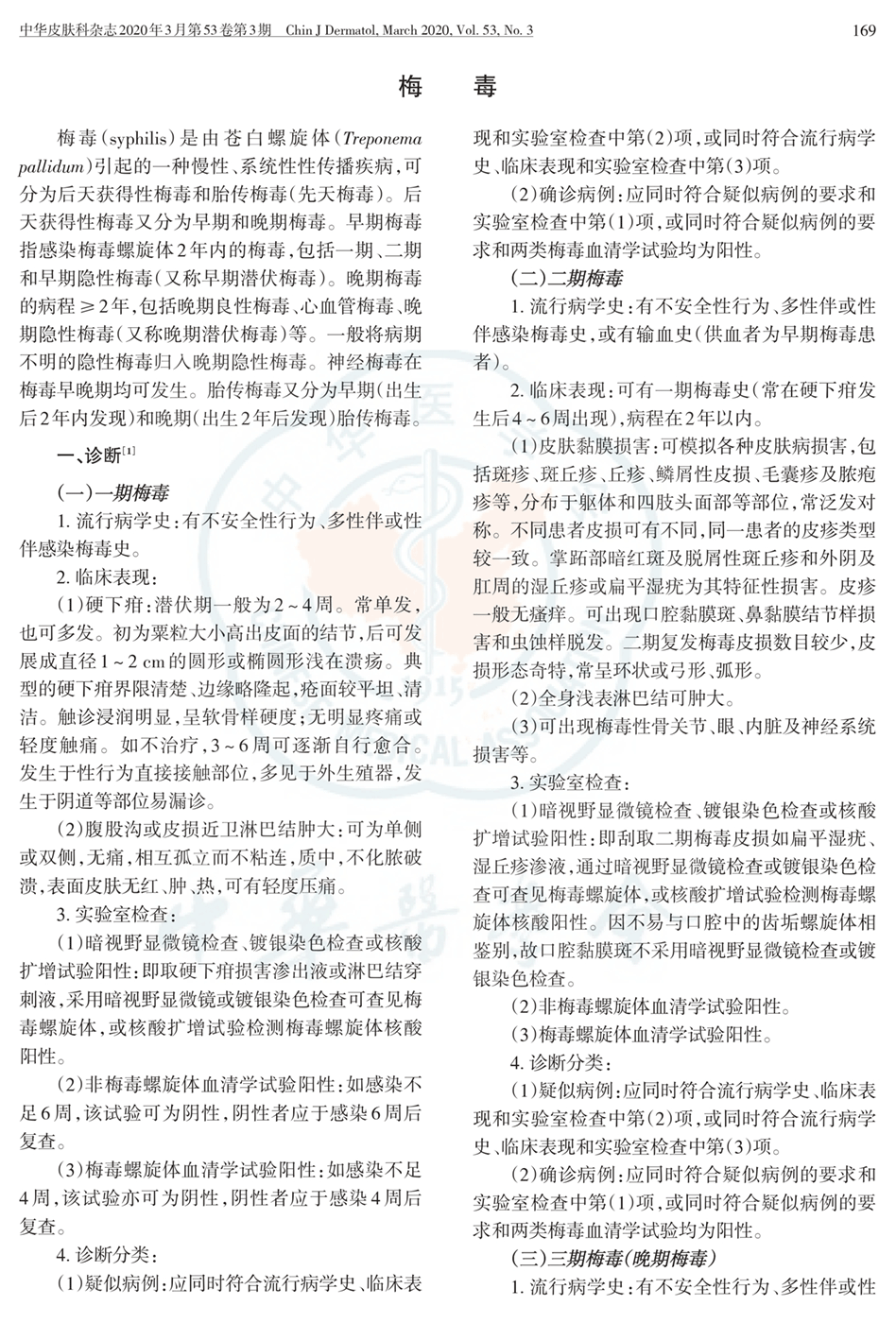 梅毒、淋病和生殖沙眼衣原体感染诊疗指南(2020年)