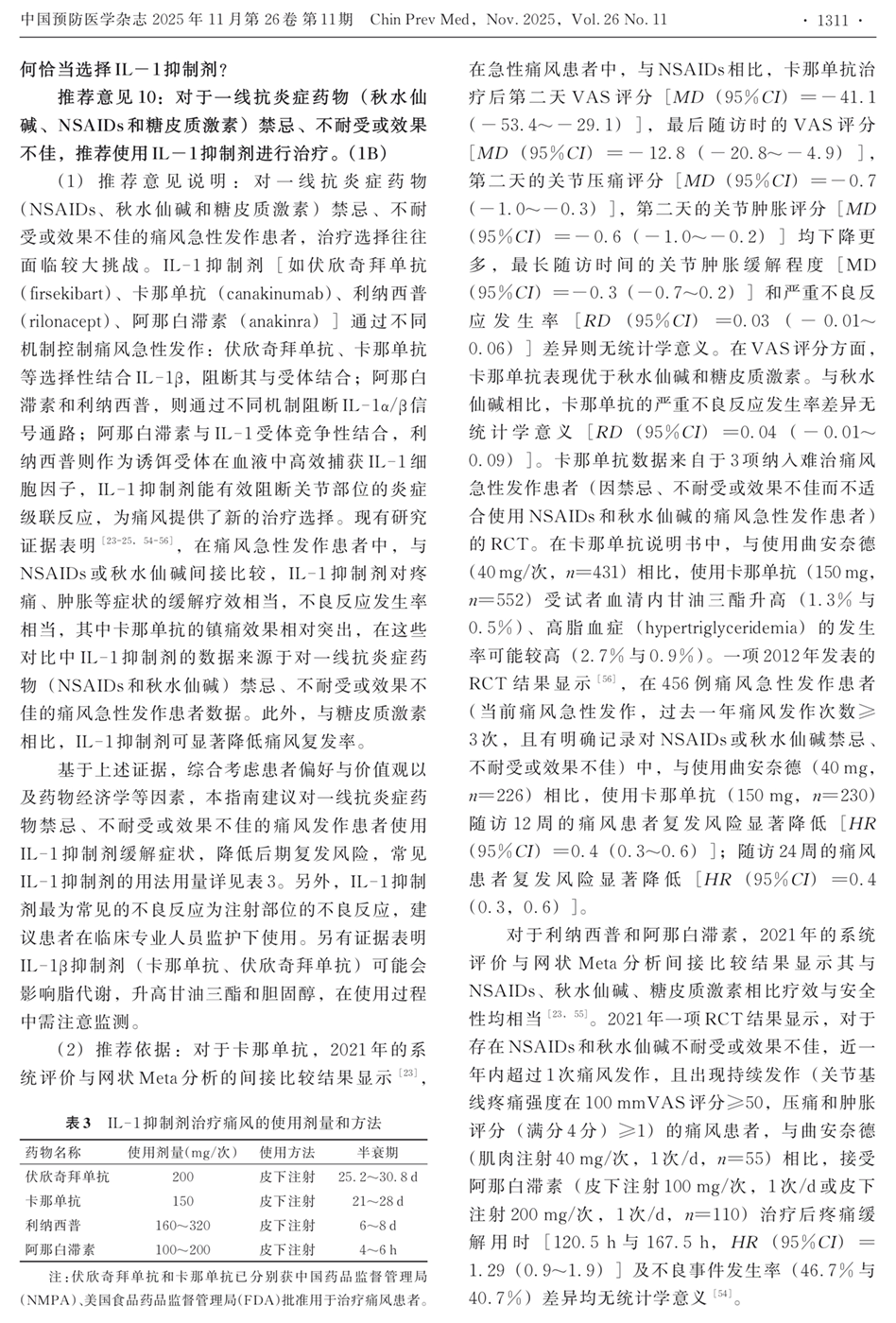 临床问题5:对于痛风急性发作期的患者,如何恰当选择IL-1抵制剂?