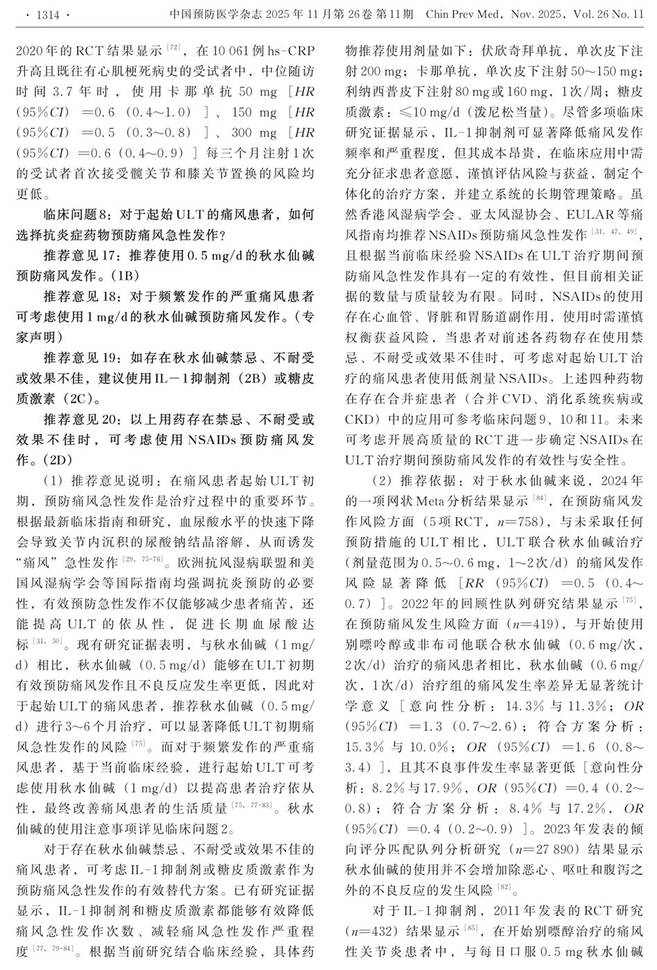 临床问题8:对于起始ULT的痛风患者,如何选择抗炎症药物预防痛风急性发作?