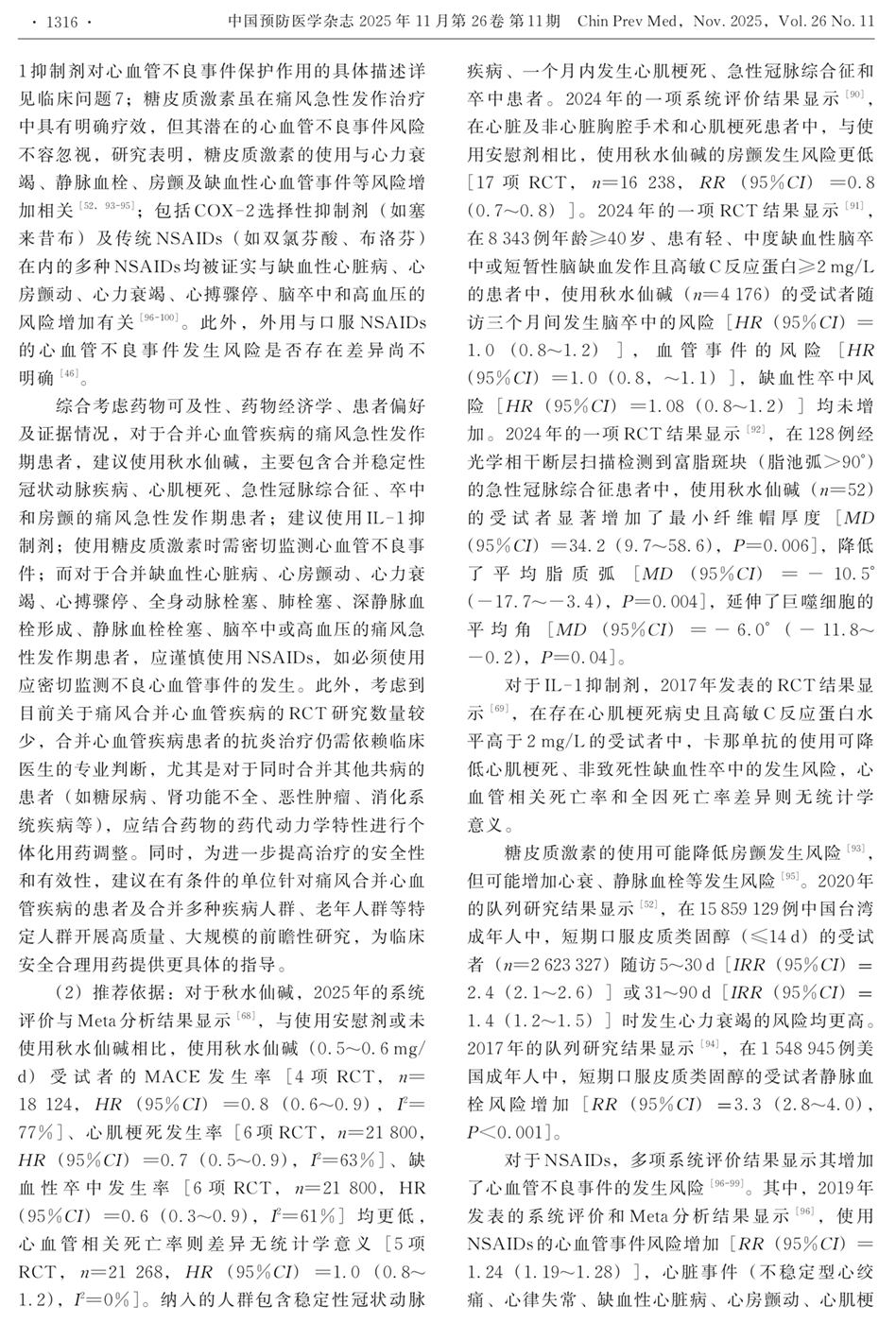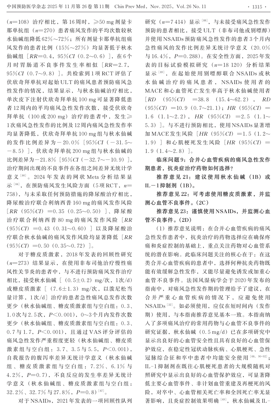 临床问题9:合并心血管疾病的痛风急性期,抗炎症治疗药物如何选择?