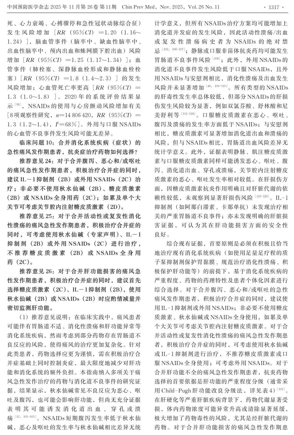 临床问题10:合并消化系统疾病的痛风急性期,抗炎症治疗药物如何选择?