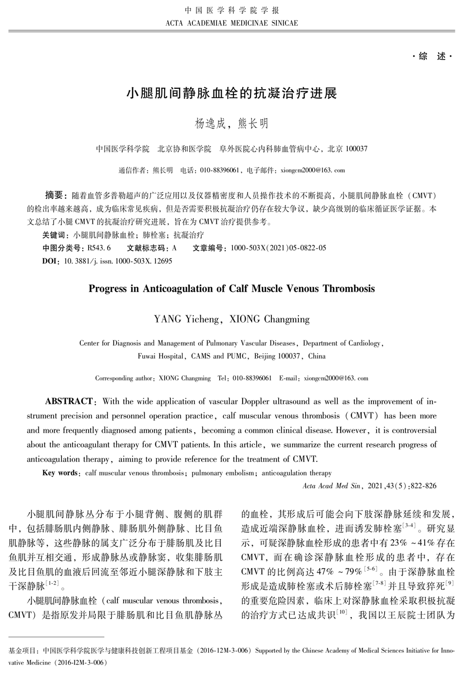 小腿肌间静脉血栓的抗凝治疗进展(2021年)