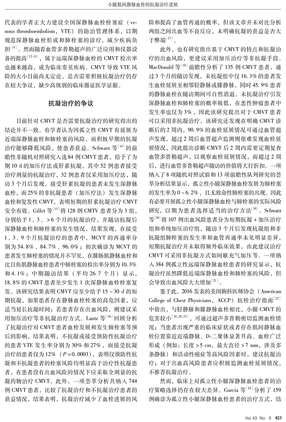 小腿肌间静脉血栓的抗凝治疗进展(2021年)