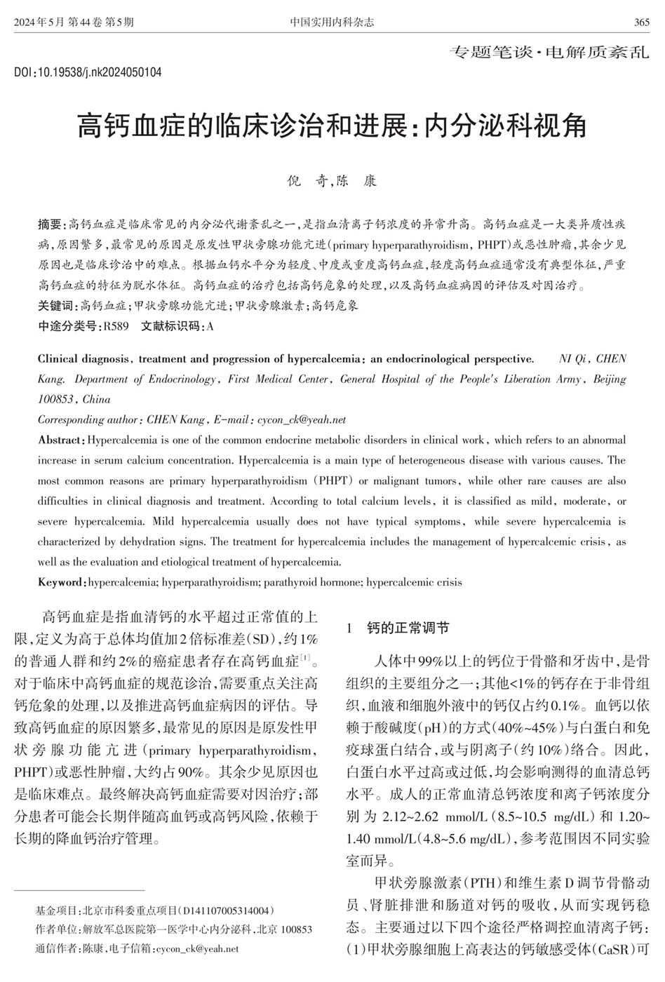 高钙血症的临床诊治和进展:内分泌科视角(2024年)
