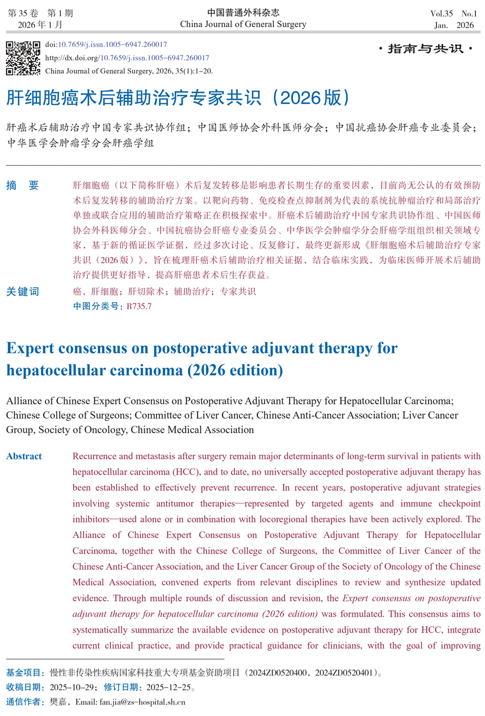 肝细胞癌术后辅助治疗专家共识(2026版)