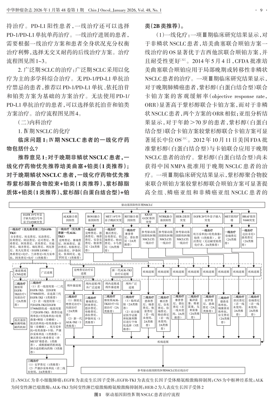 1、Ⅳ期NSCLC的化疗:驱动基因的阳性Ⅳ期NSCLC患者治疗流程