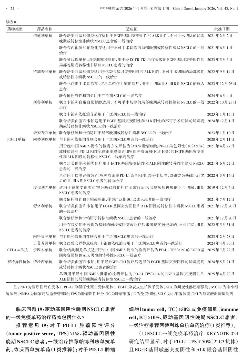 7、免疫治疗:表8 已批准上市的治疗肺癌的免疫检查点抑制剂