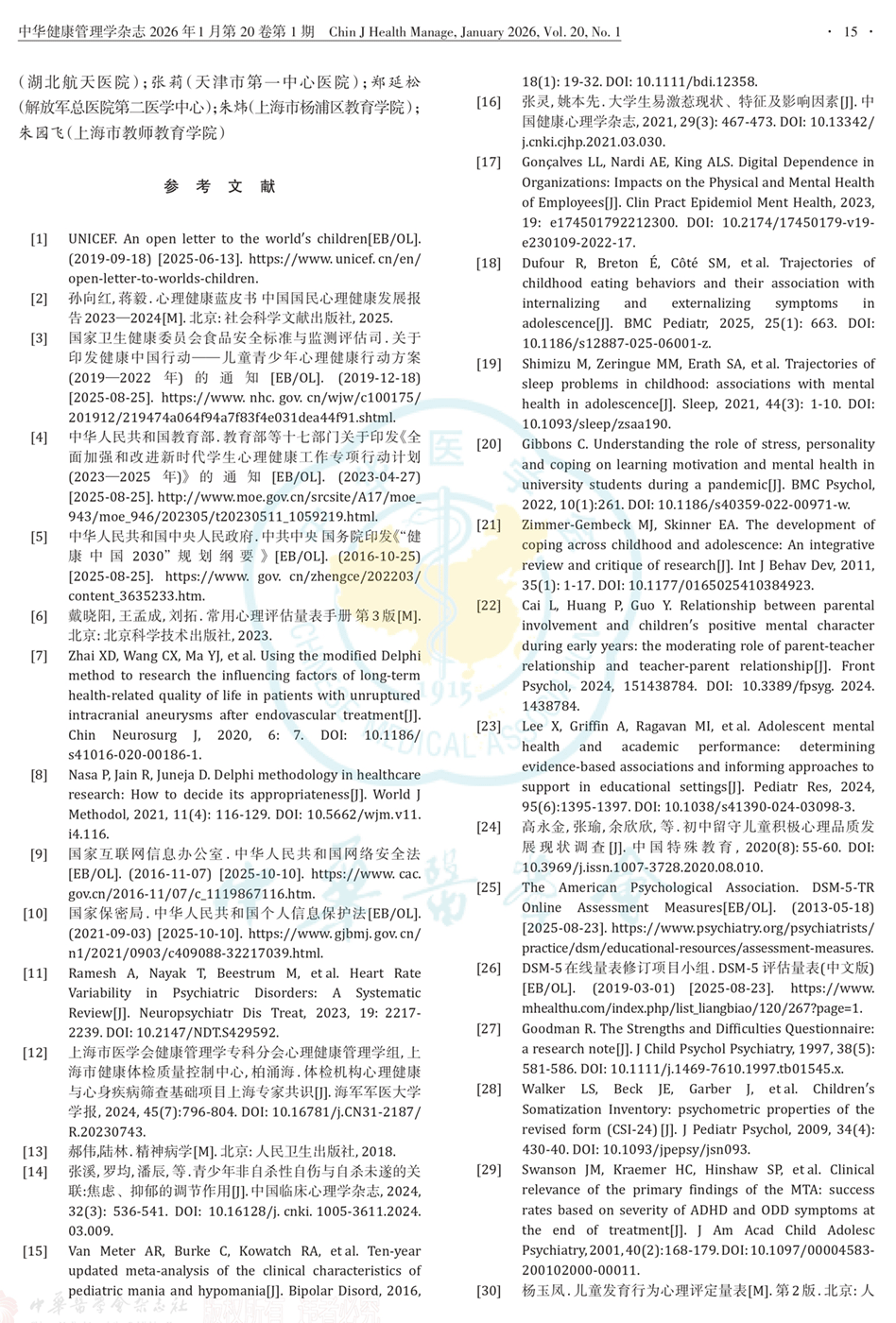儿童青少年心理健康筛查