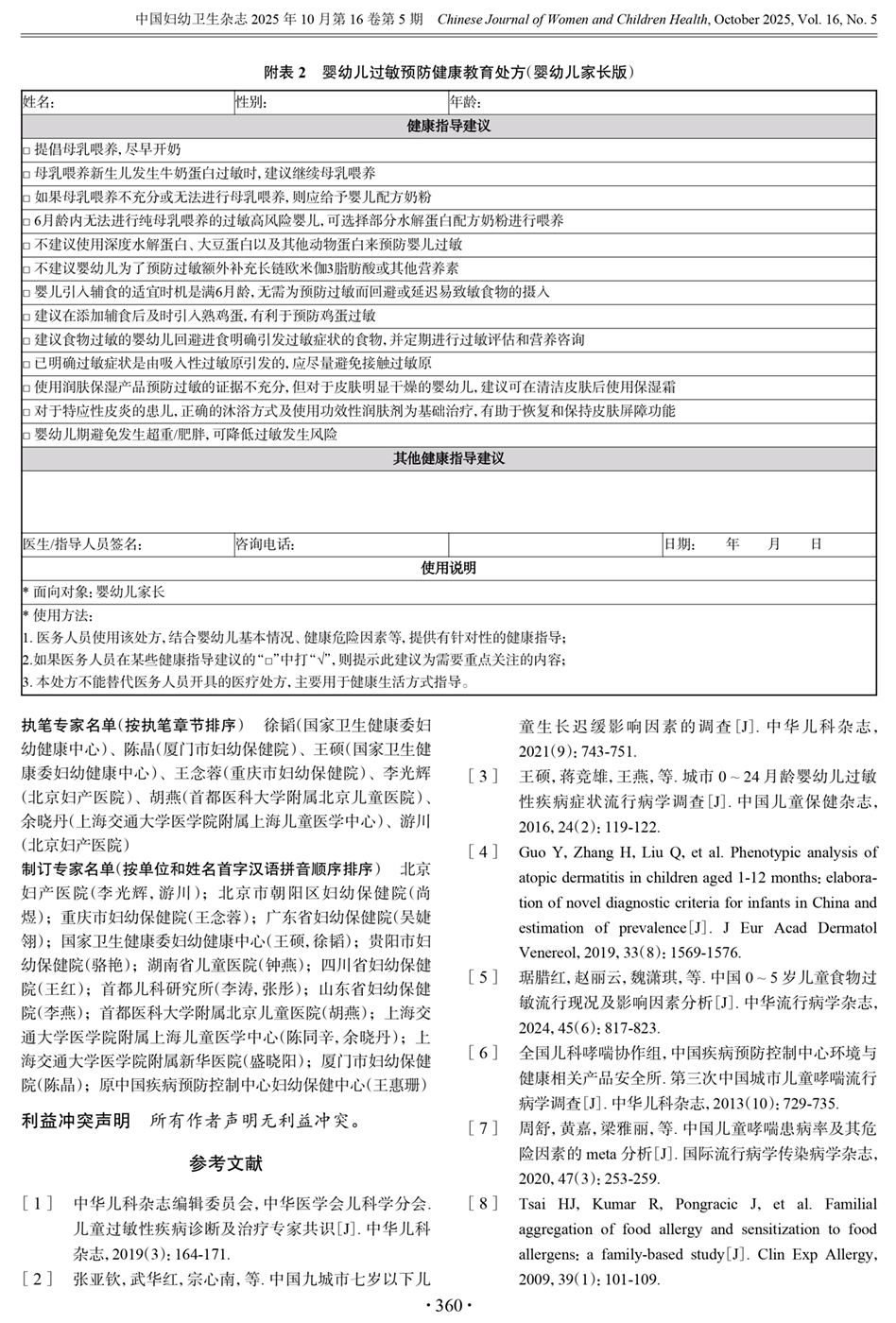 6、健康教育方法和评价 附表1 婴幼儿过敏预防健康教育处方