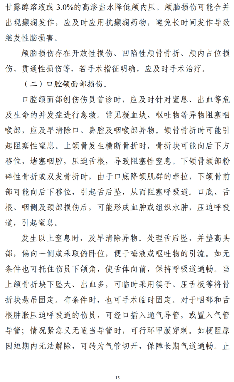 五、各损伤部位的进一步处理:颅脑损伤、口腔颌面损伤、颈部损伤