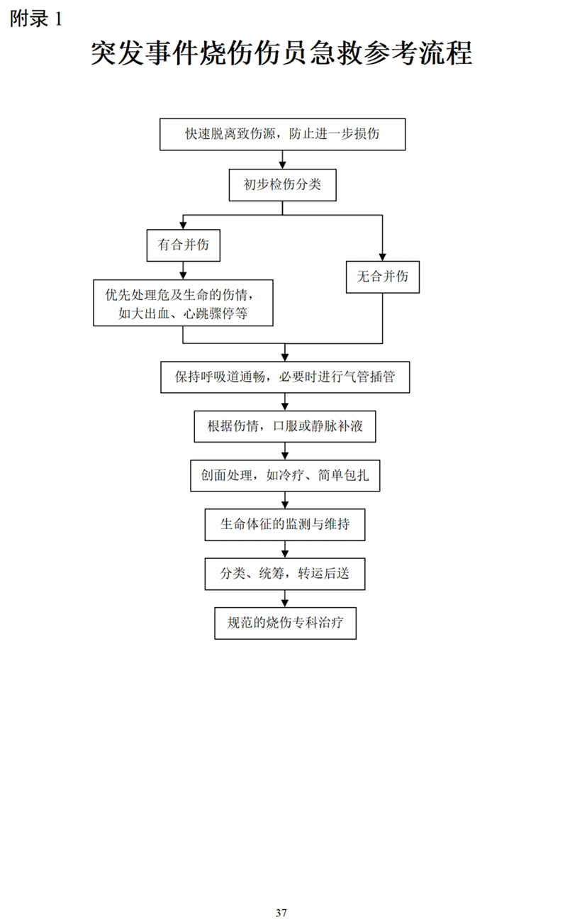 附录1 突发事件烧伤伤员急救参考流程