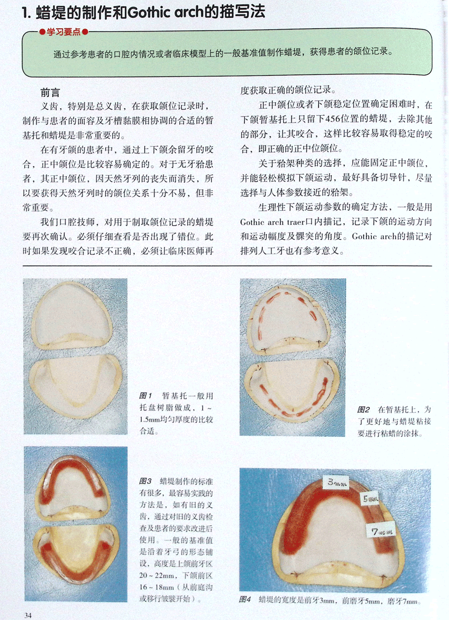 1.蜡堤的制作和Gothic arch的描写法