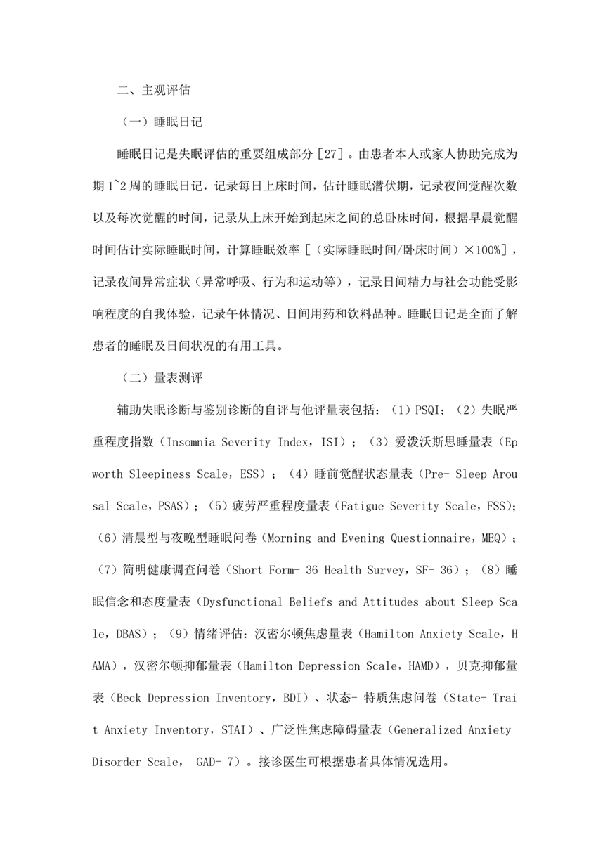 失眠的临床评估