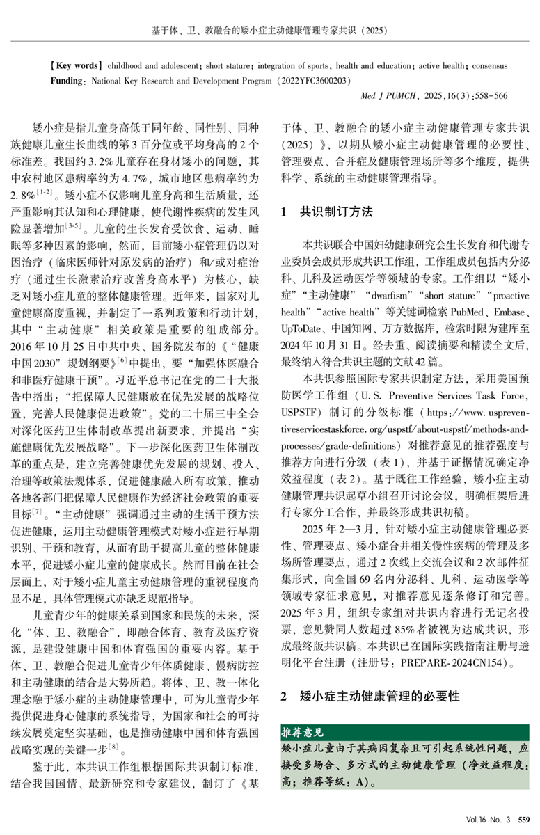 基于体、卫、教融合的矮小症主动健康管理专家共识(2025)