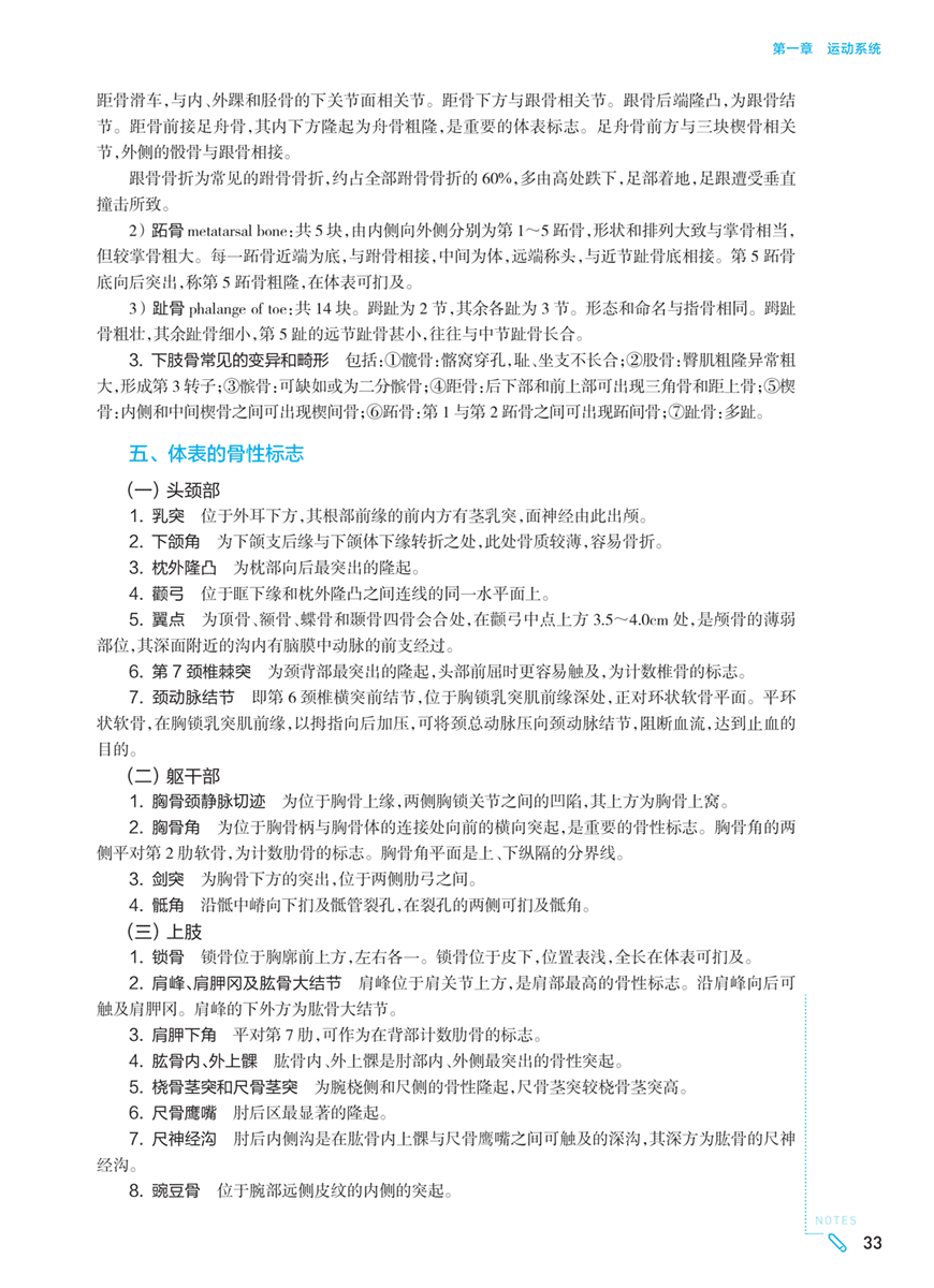 五、体表的骨性标志 (一)头颈部 (二)躯干部 (三)上肢 (四)下肢