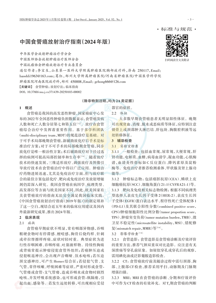 食管癌放射治疗指南2024版