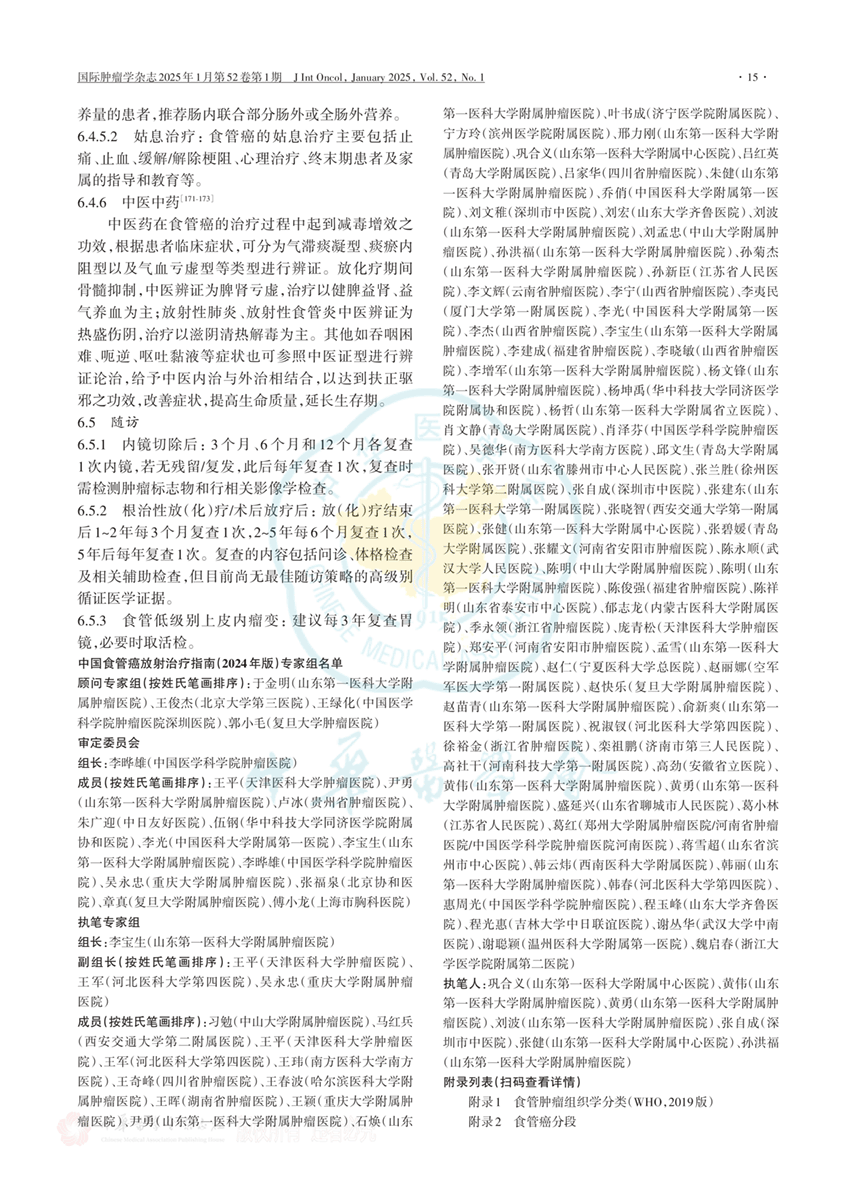 食管癌放射治疗指南2024版