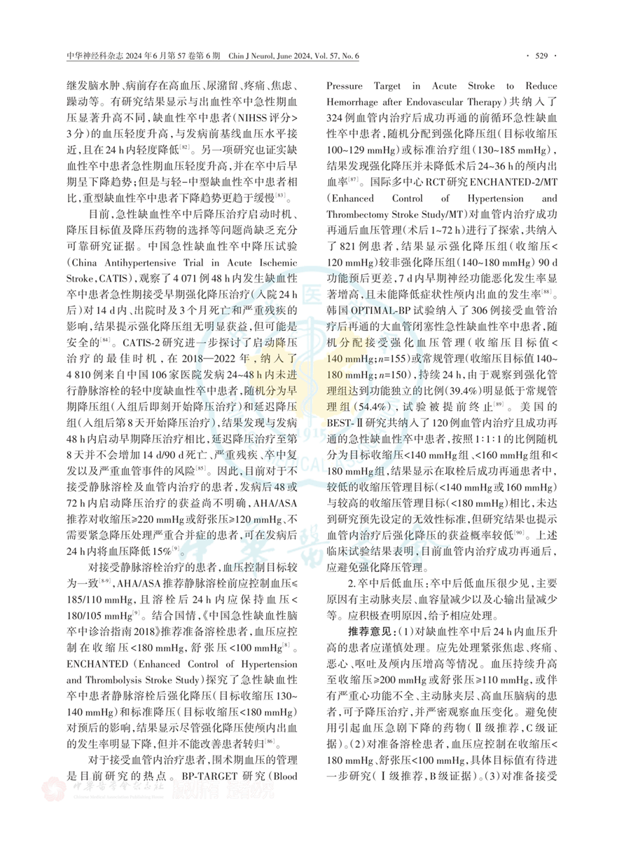 脑卒中诊治指南2023年