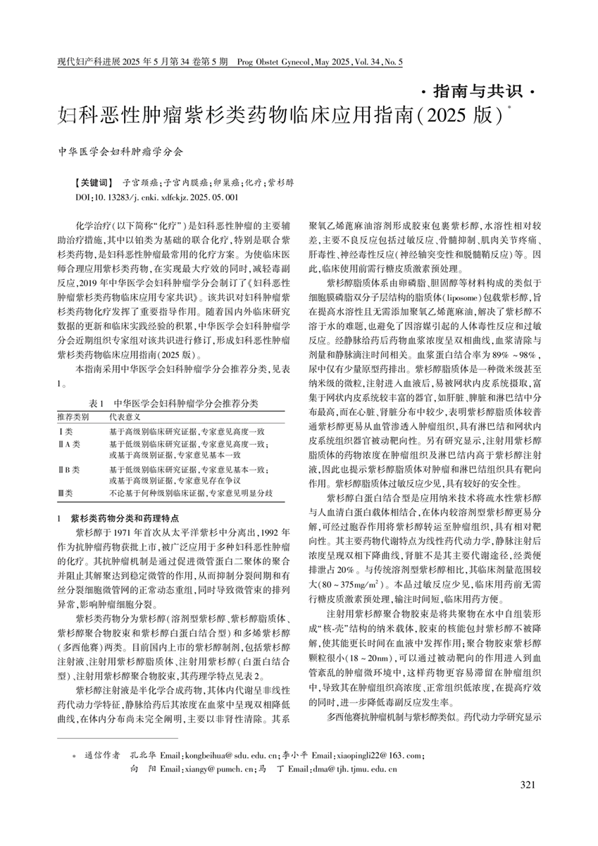 妇科恶性肿瘤紫杉类药物临床应用指南(2025版)