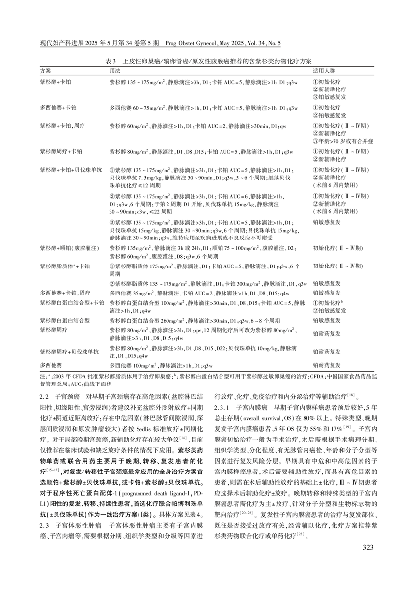 妇科肿瘤紫杉类药物指南