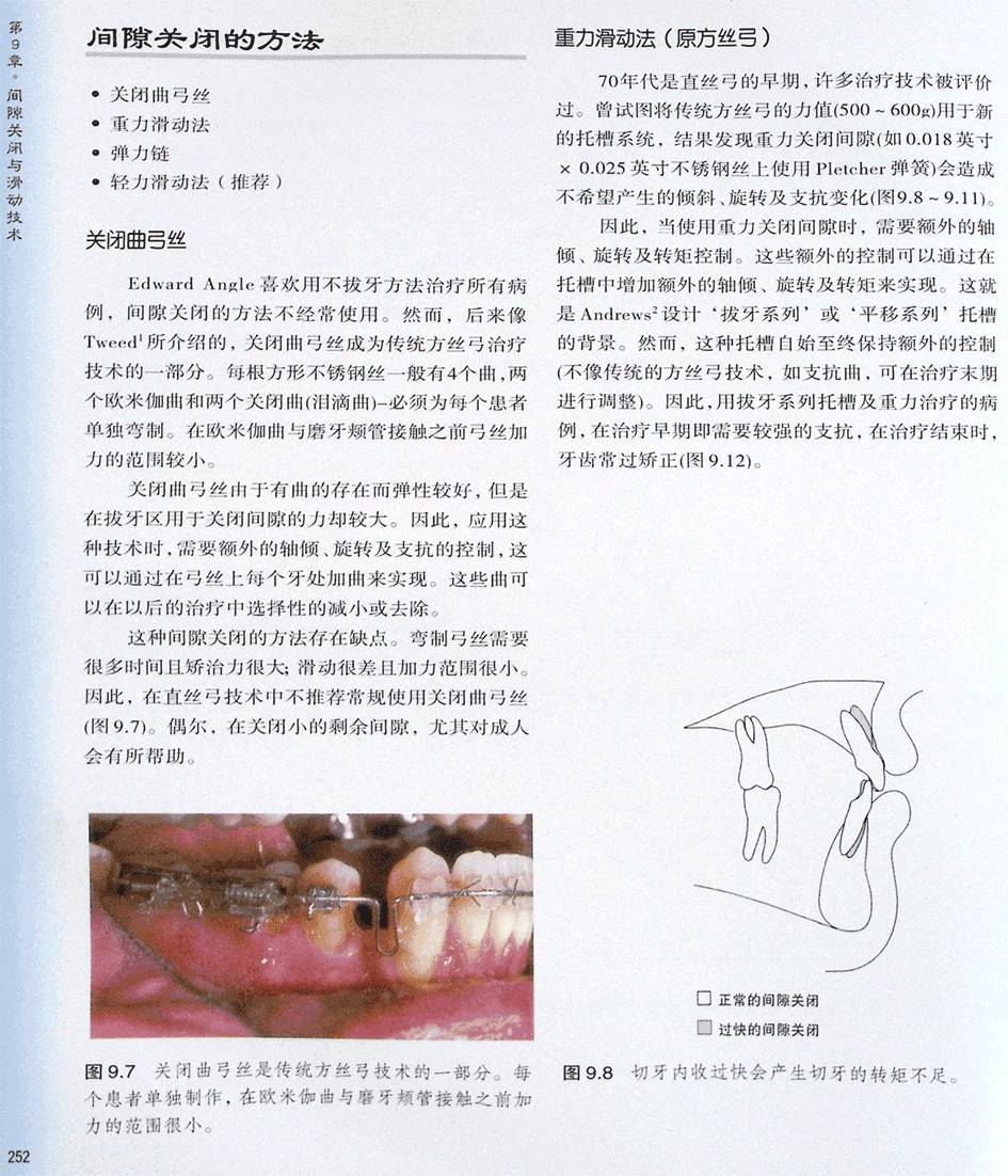 间隙关闭的方法:关闭曲弓丝、重力滑动法