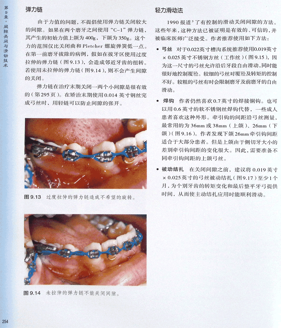 间隙关闭的方法:弹力链、轻力滑动法