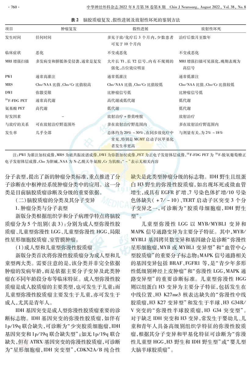 脑胶质瘤诊疗指南2022版