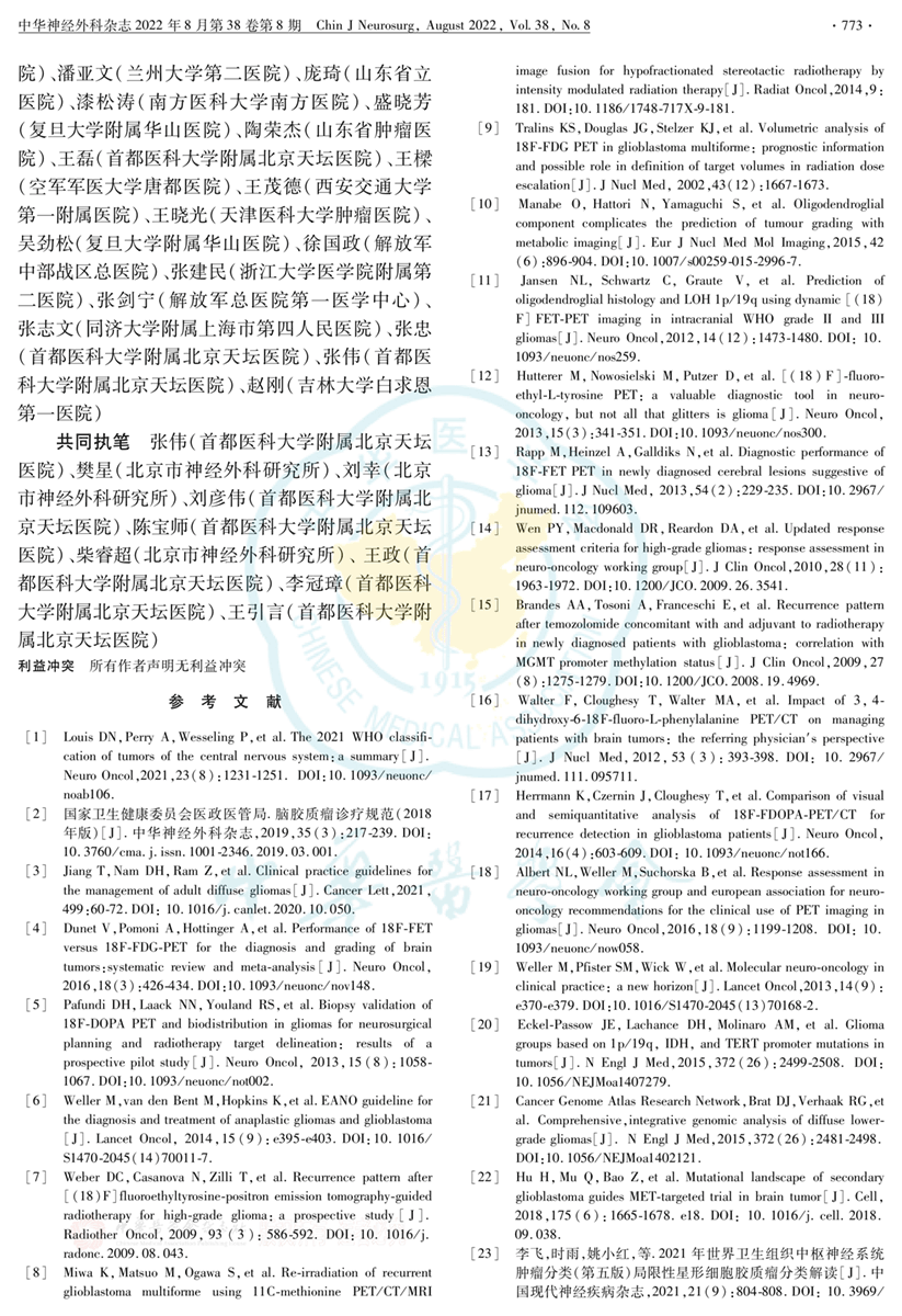 脑胶质瘤诊疗指南2022版