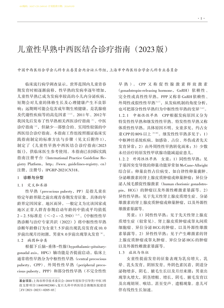 儿童性早熟中西医结合诊疗指南(2023版)