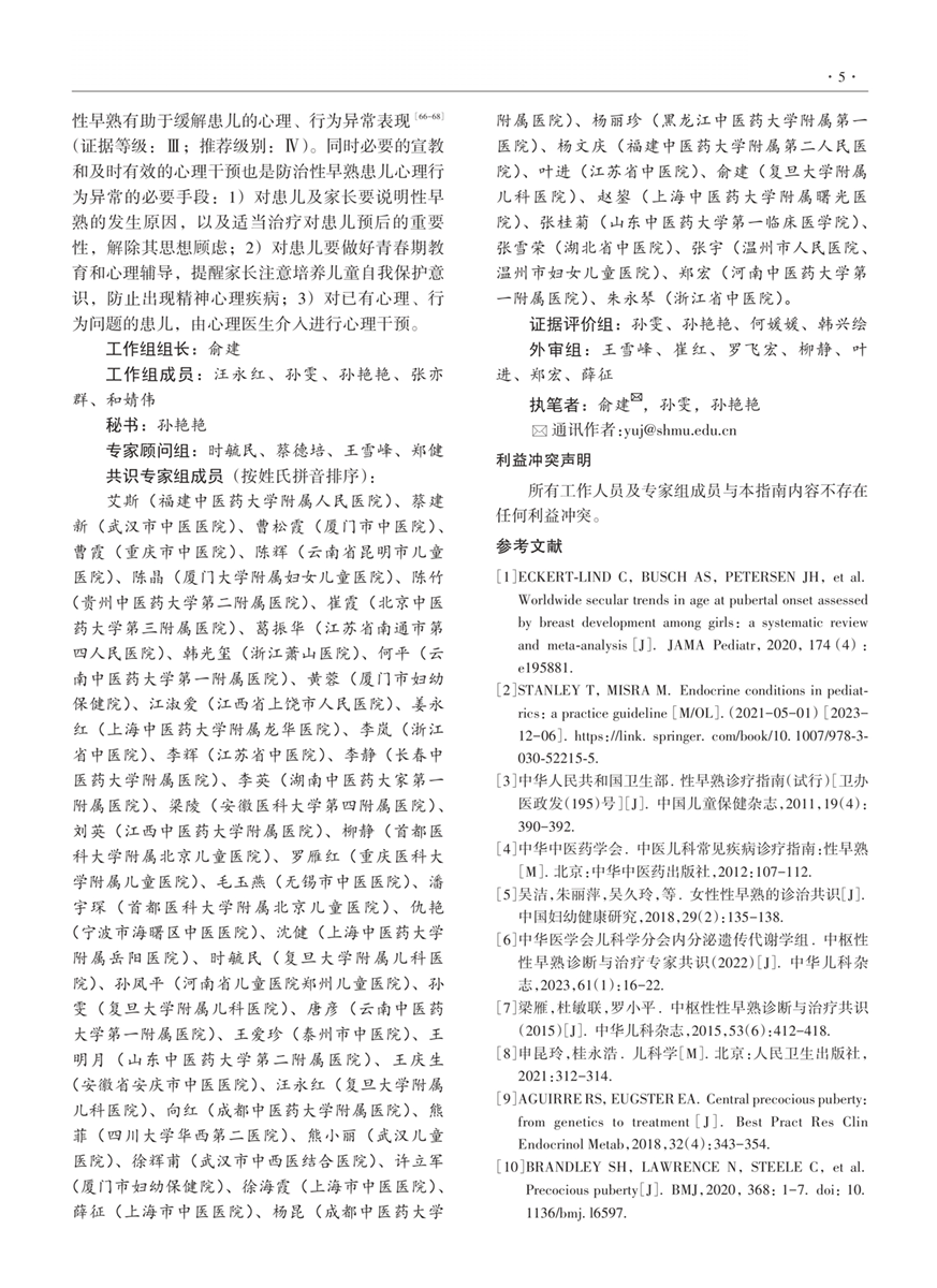 儿童性早熟诊疗指南2023版