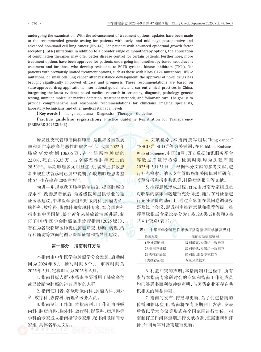 中华医学会肺癌临床诊疗指南(2025版)