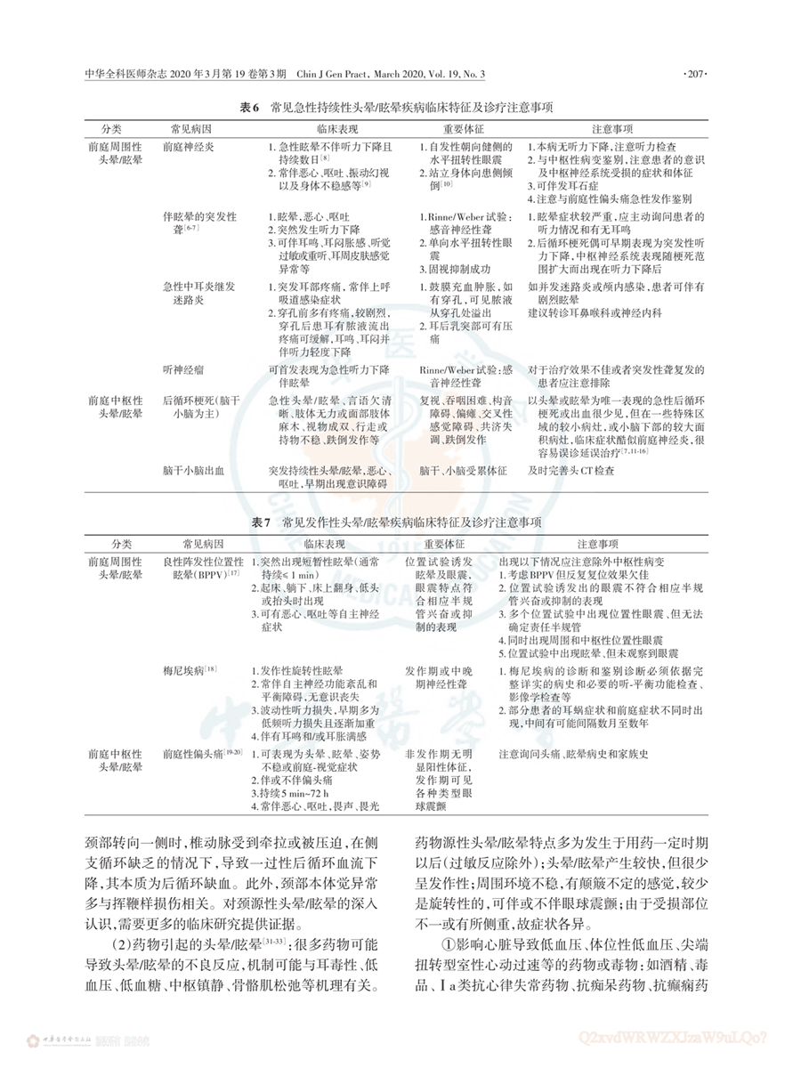 头晕/昡晕基层诊疗指南
