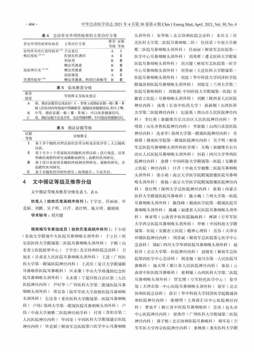 眩晕急诊诊断与治疗指南(2021年)