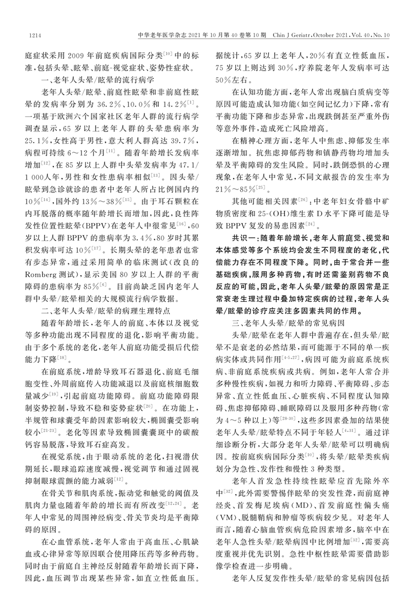 老年人头晕、昡晕诊疗多学科专家共识(2021年)