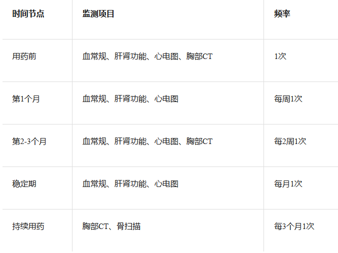 监测方案:用药前、用药后1个月、每3个月复查心电图