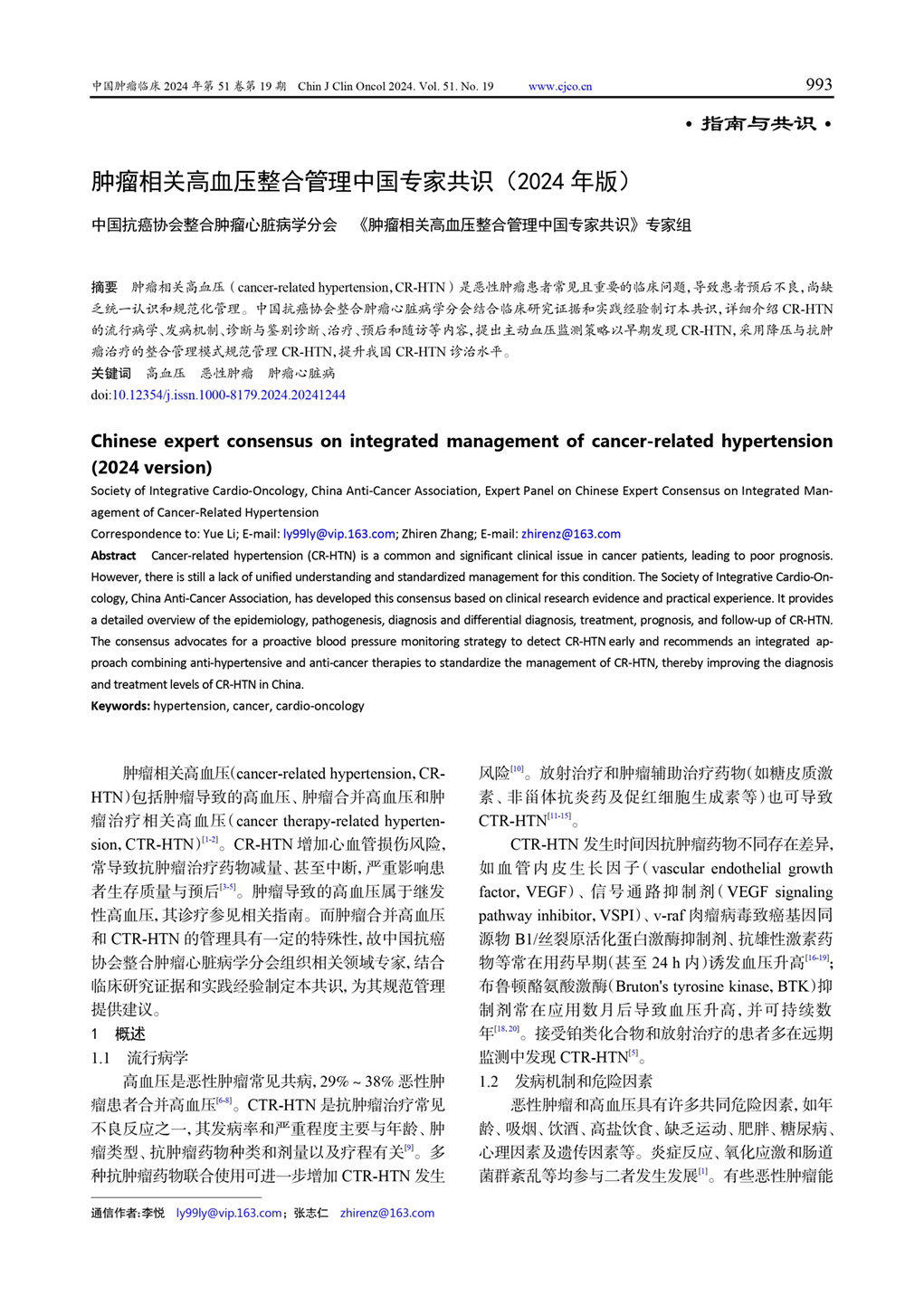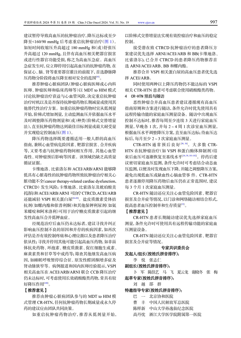肿瘤相关高血压整合管理专家共识(2024年版)