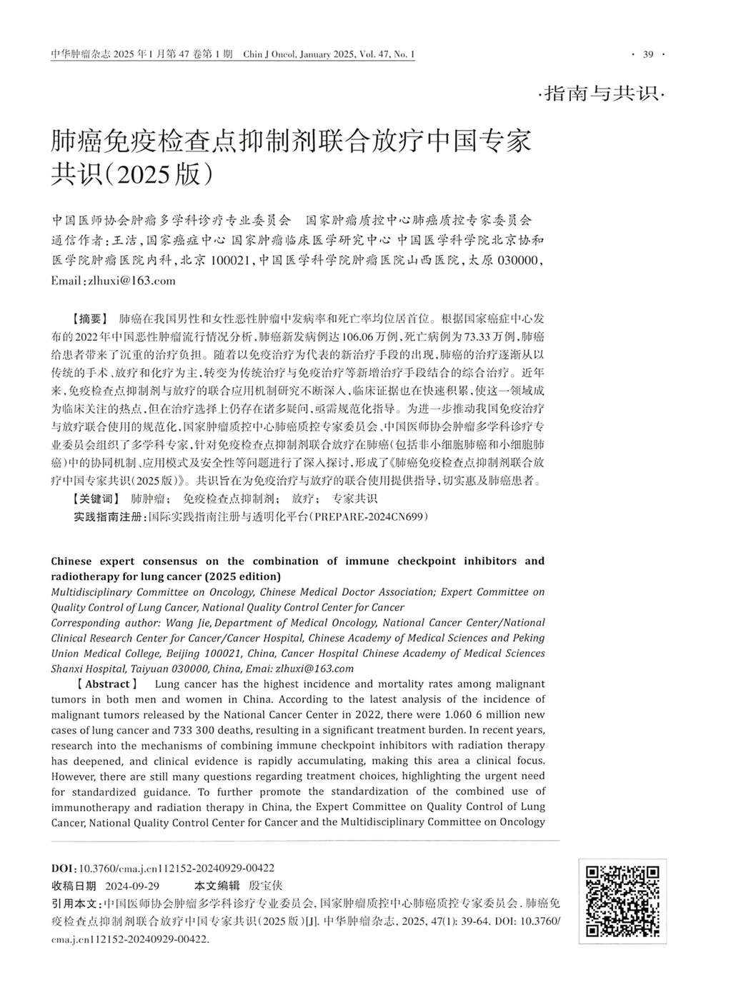 肺癌免疫检查点抑制剂联合放疗专家共识(2025版)
