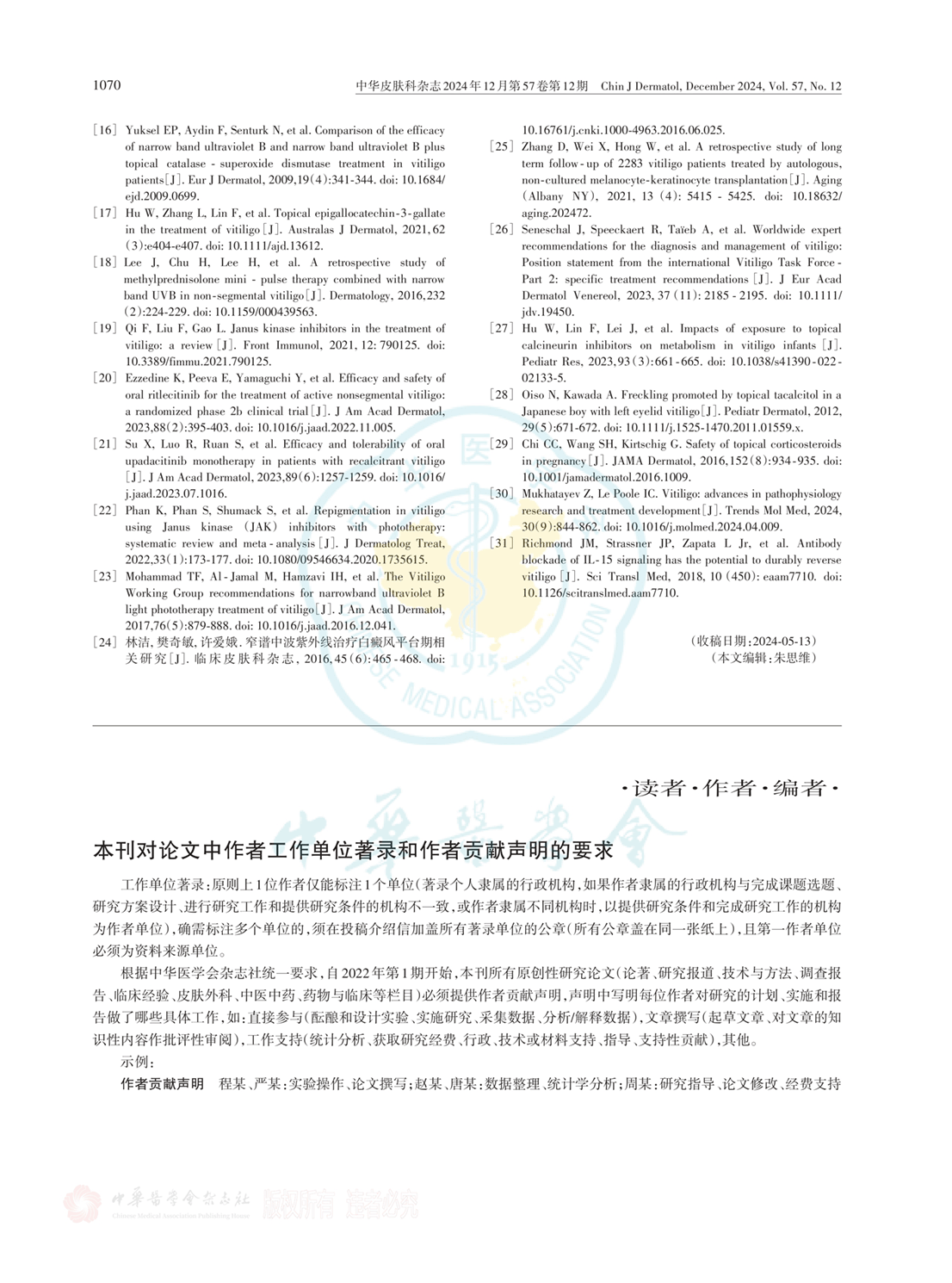 白癜风诊疗共识2024