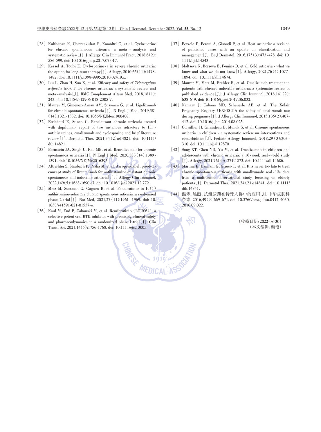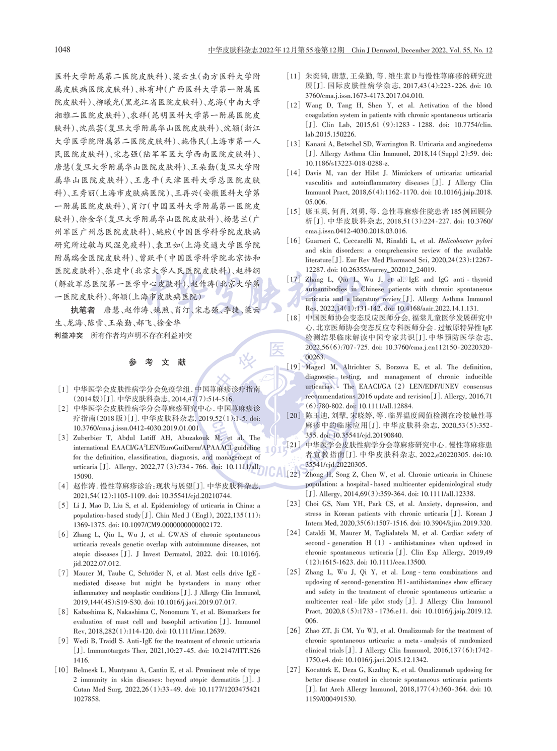 荨麻疹诊疗指南2022版
