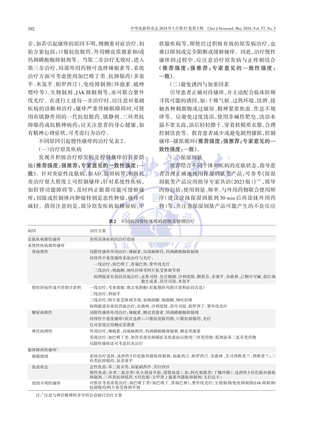 不同原因引起慢性瘙痒的药物及物理治疗