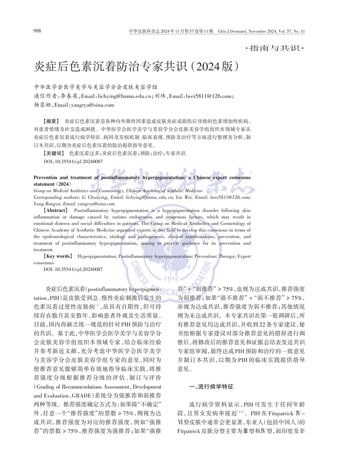 炎症后色素沉着防治专家共识(2024版)