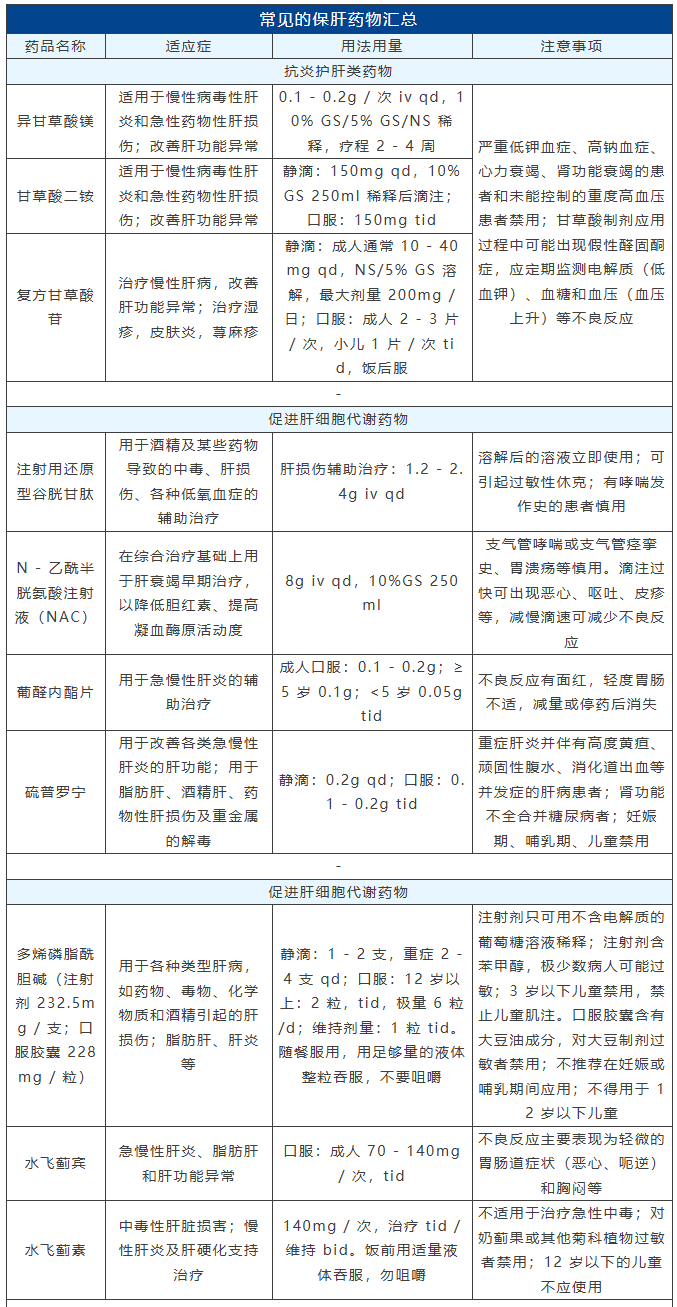 #2 保肝药物汇总及用法用量
