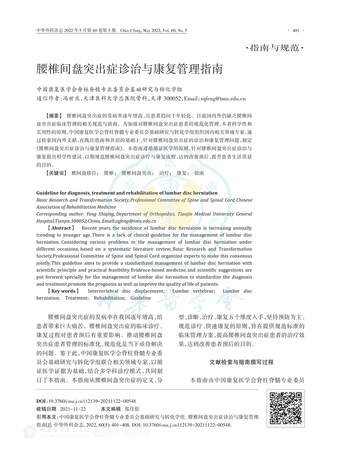 腰椎间盘突出症诊治与康复管理指南(2022年)