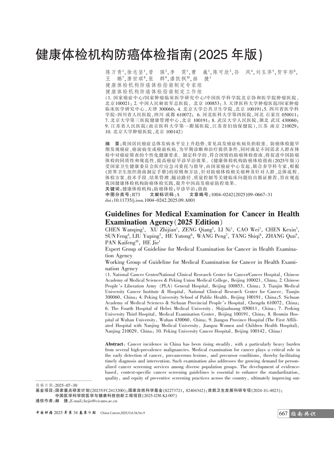 健康体检机构防癌体检指南(2025年版)