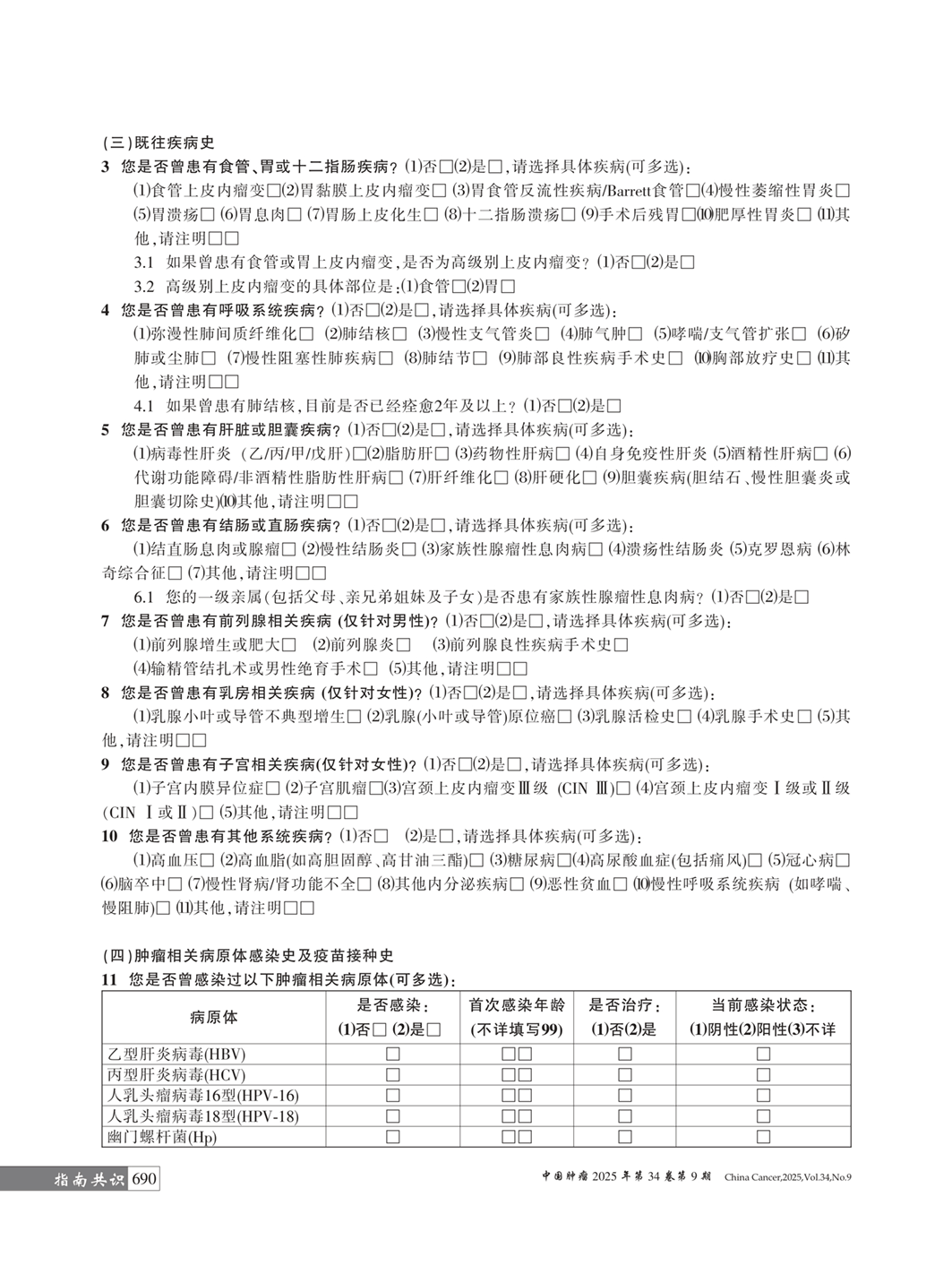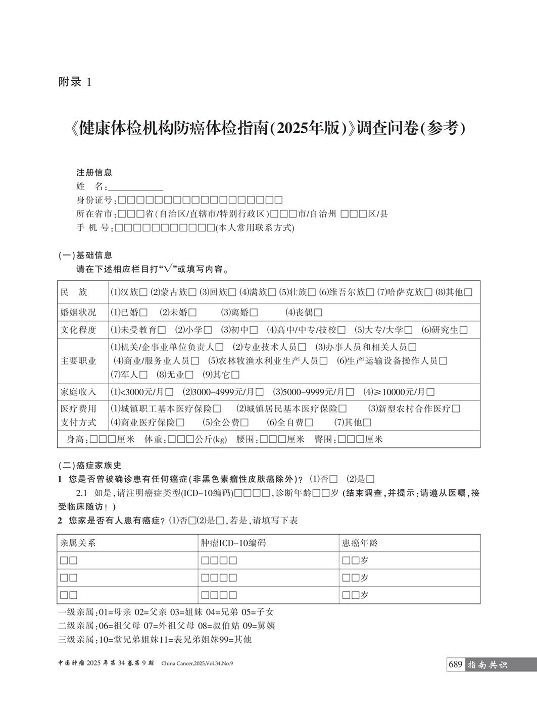 附录1 健康体检机构防癌体检指南2025年版调查问卷